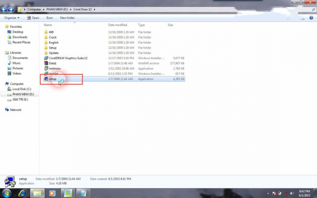 Bước 1: Thực hiện download Corel x12 về máy tính theo đường link chính thống. Sau đó tiến hành giải nén bộ cài đặt và thực hiện chạy tệp tin Setup.exe trong thư mục.