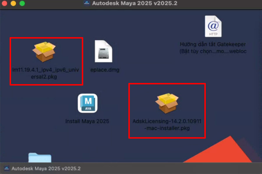 Bước 1: Sau khi tải về, mở file dmg. Chạy file Install Maya 2025 để cài như bình thường