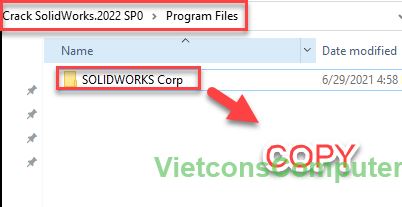 Quay lại thư mục crack, vào thư mục Program Files(x86) -> chọn thư mục SOLIDWORKS PDM -> Copy