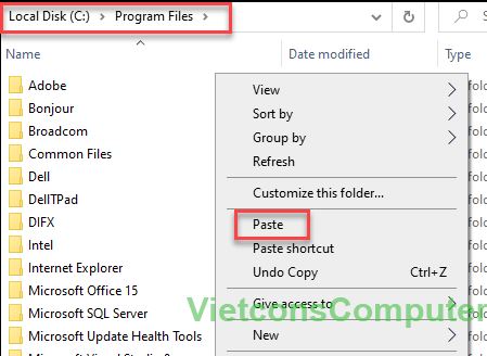 Truy cập vào ổ đĩa C -> Program File -> click phải -> Paste