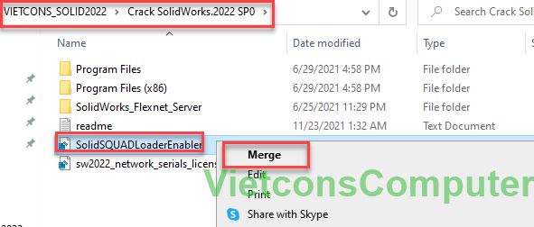 Quay lại thư mục crack, click phải file SolidSQUADLoaderEnabler -> Merge