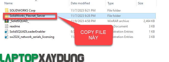 BƯỚC 2:  Truy cập vào thư mục crack _SolidSQUAD_, tìm đến file sw2022_network_serials_licensing